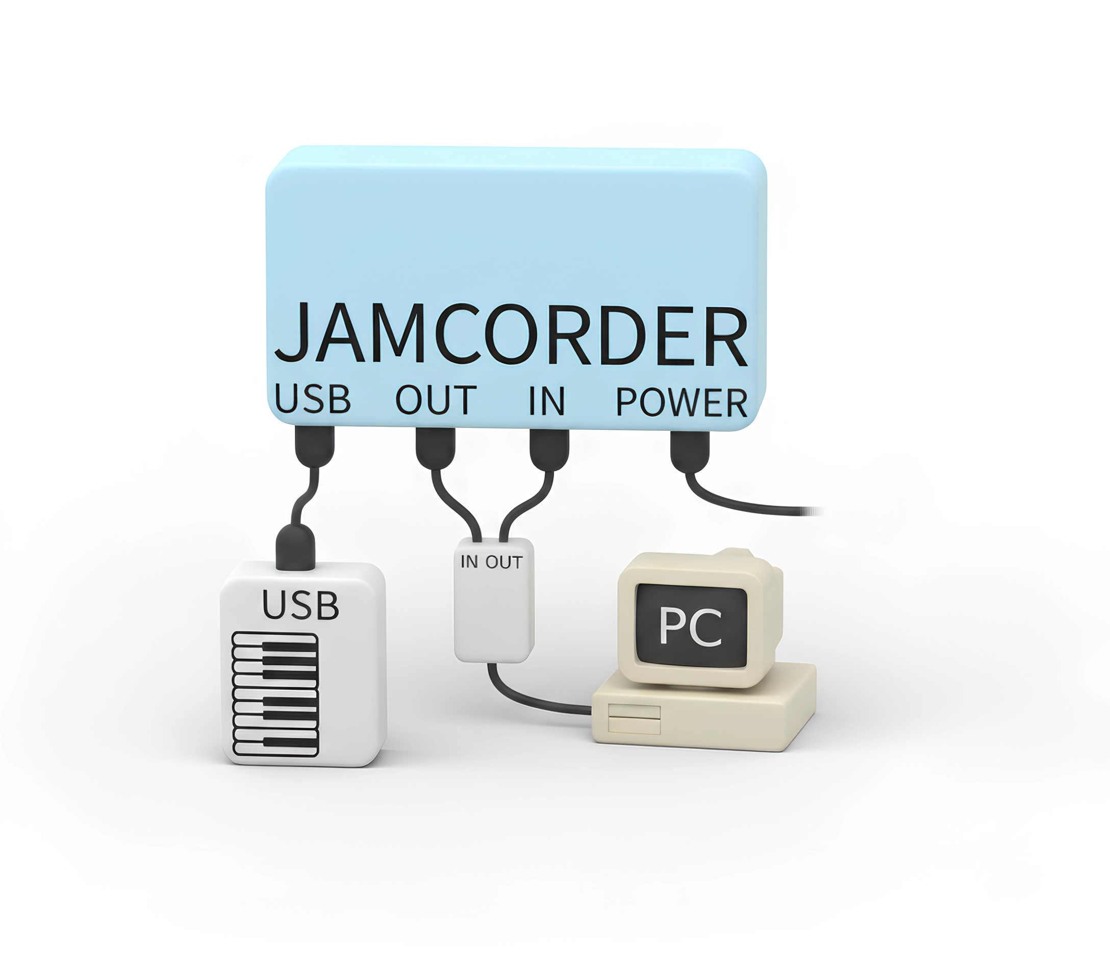 connect your jamcorder via 5-pin, and your pc or tablet via usb